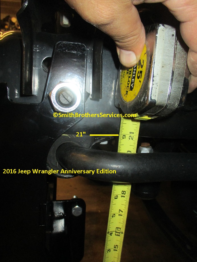 This 2016 Jeep Wrangler JK sits higher than the one above. It is 21" from the bottom of the frame to the ground.