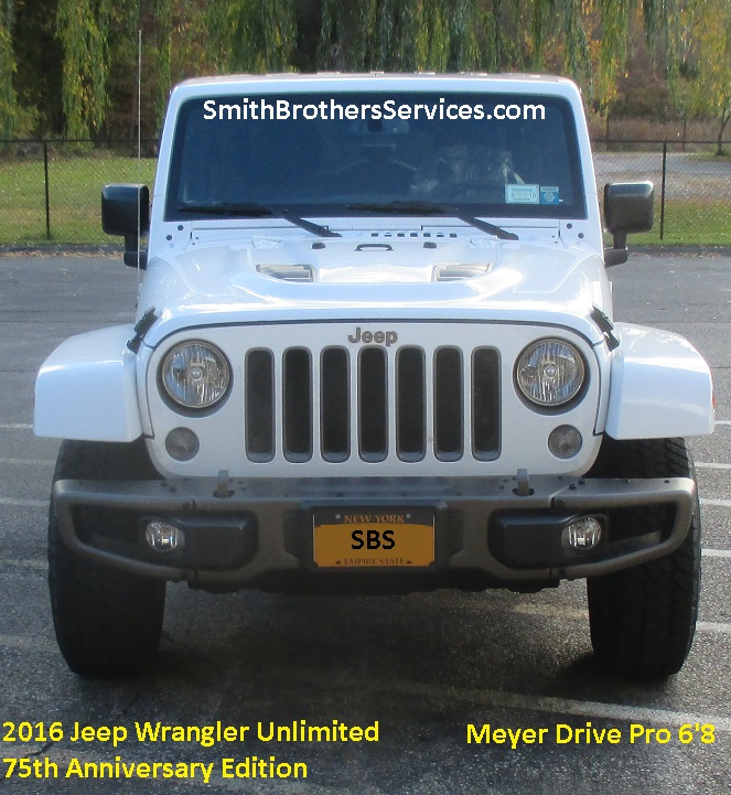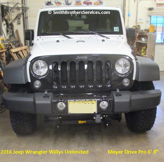 First is a 2016 Jeep Wrangler Willys Unlimited with Meyer Drive Pro 6' 8" plow..