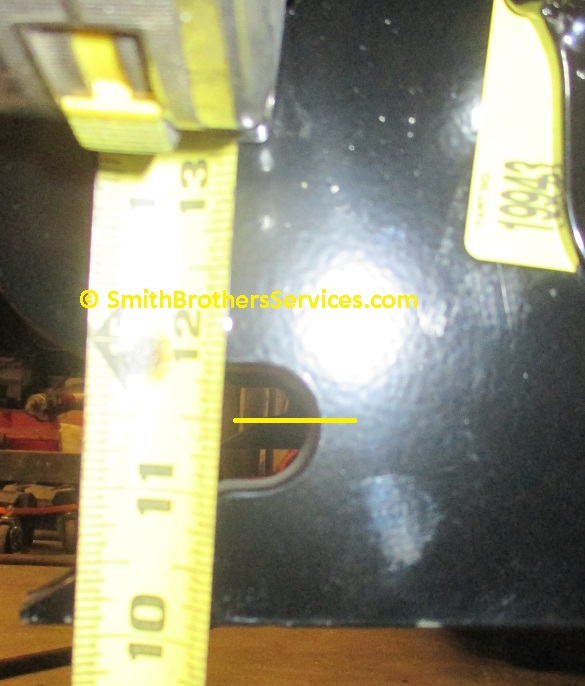 You can see the center of the notch in the Clevis is at 14". We need to make new ears for the plow A Frame that are 3" taller, to compensate.
