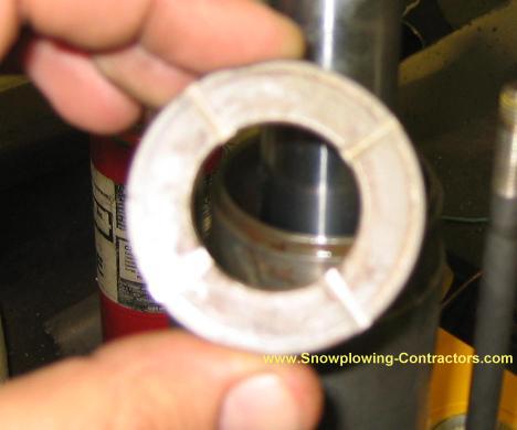 Here you can see we drizzled oil onto the Lift Ram, and slid the new clear plastic O Ring onto the Ram, down against the grooved Washer.