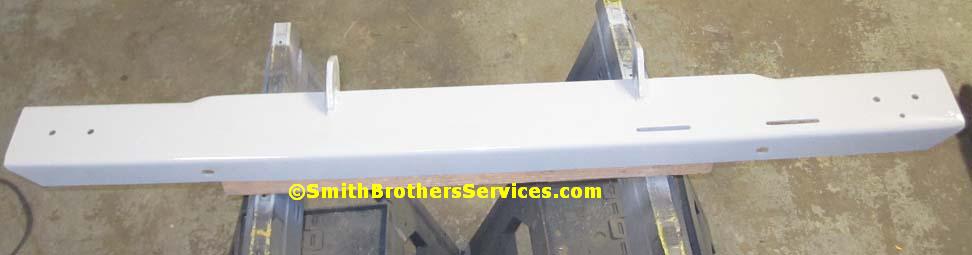 Painted satin black. Those two white lines in the upper left on the bumper are the original slots for mounting the license plate.