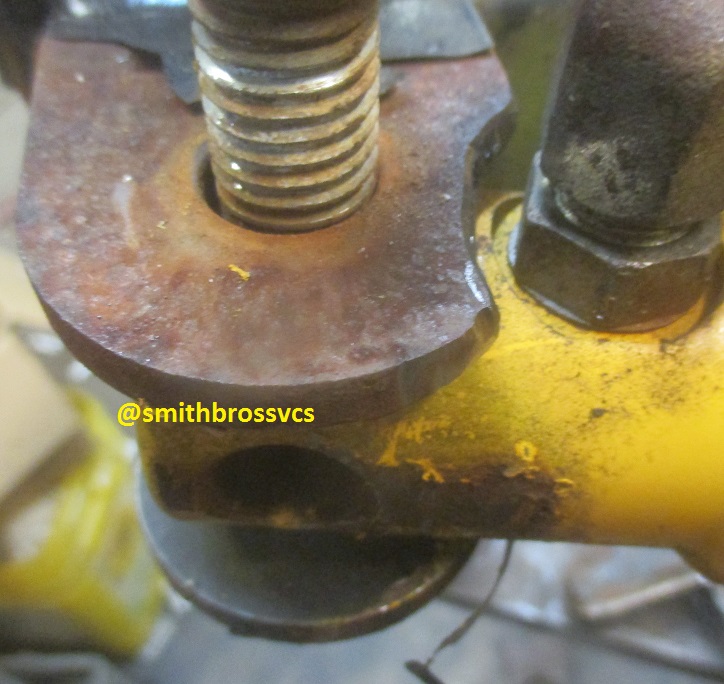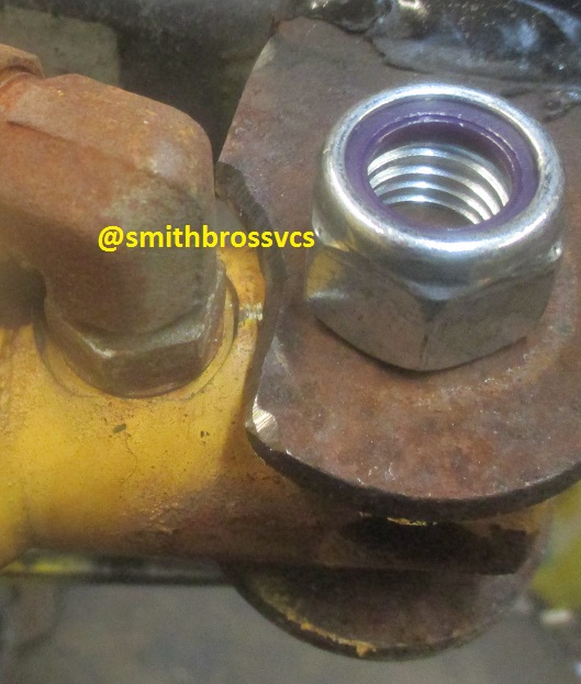 Turning the PA Rams up is a good idea anyway, but I thought I could gain some hose length on the passenger side, but not enough, and had to use a hose longer than I liked (22922) which is 44". The little notch is ground out for fitting clearance. Turned the bolts up too, they will be the lowest point when the plow is raised.