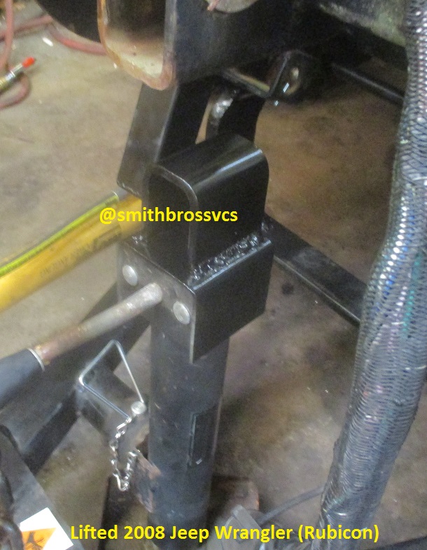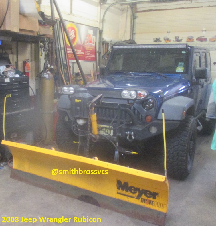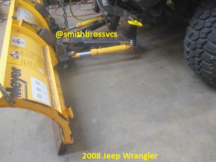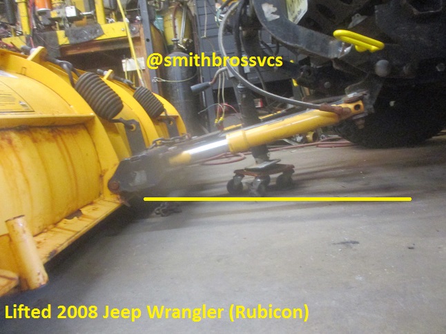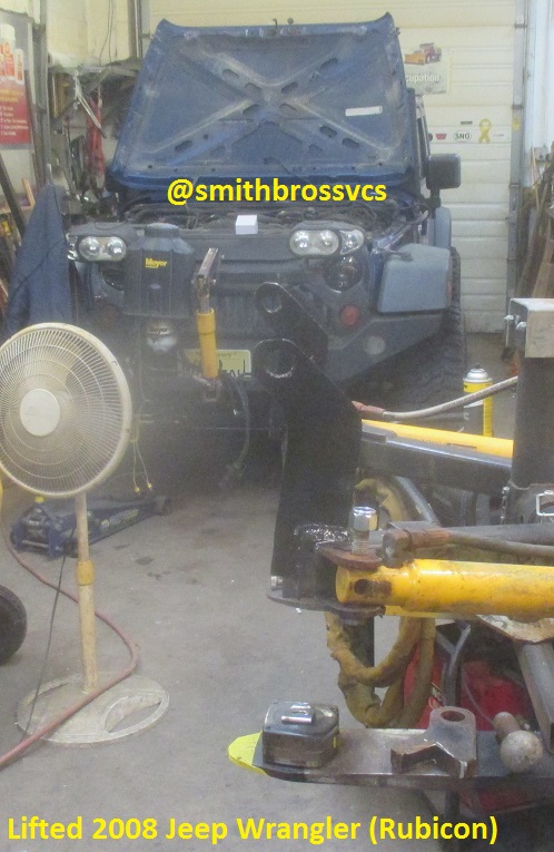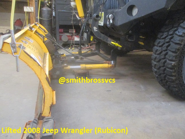 This customer came with a used plow in good condition, and all the necessary parts to install except a couple. I did not know how lifted it was, as I found out after it was scheduled. I did not have a 1/2 ton clevis here for the install, and could definitely not get one in time. Since this Jeep is lifted, and definitely sees off road use, I installed the Drive Pro Clevis the customer brought, for more ground clearance. I was going to have to make ears anyway, may as well make 4" taller ears rather than 2" taller and a 1/2 ton Clevis. My price is the same for 2" ears or 4" ears, both work. The mounting brackets were notched to fit an aftermarket bumper (or Anniversary Edition, or Rubicon) and it was perfect for this aftermarket bumper too. I guess this is an "Unlimited" but it has the sway bar disconnect, and other features that became "Rubicon", so I say (Rubicon).