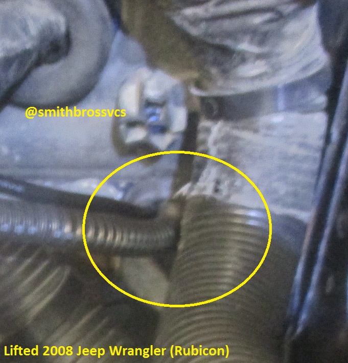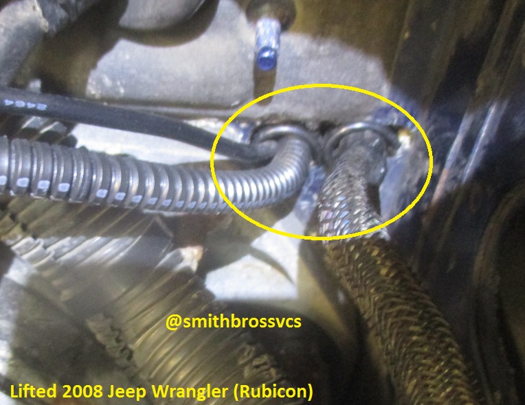 Manual transmission in this Jeep, so the usual hole I use for passing through the firewall is taken by the clutch. There was an existing hole where there was an LED wire going into the cab. There was enough room I could put a large flat head screwdriver in there to protect the wire while I made the hole MUCH larger with the burr and die grinder.