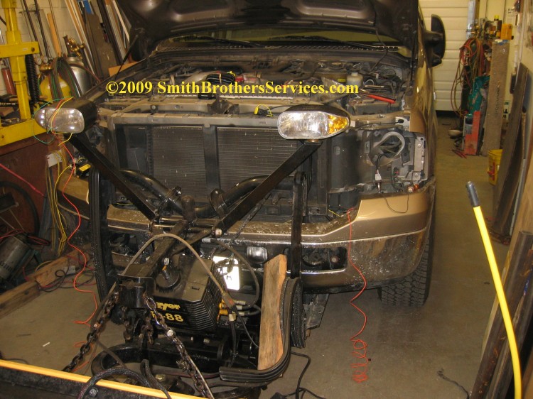 the truck's grille and onto the hood! This is a mutt. A Meyer ST-90 plow,