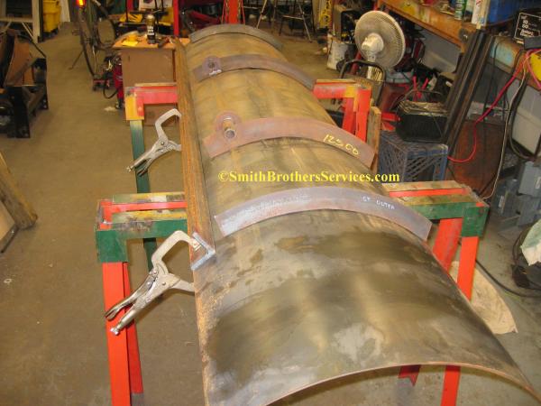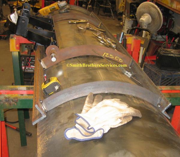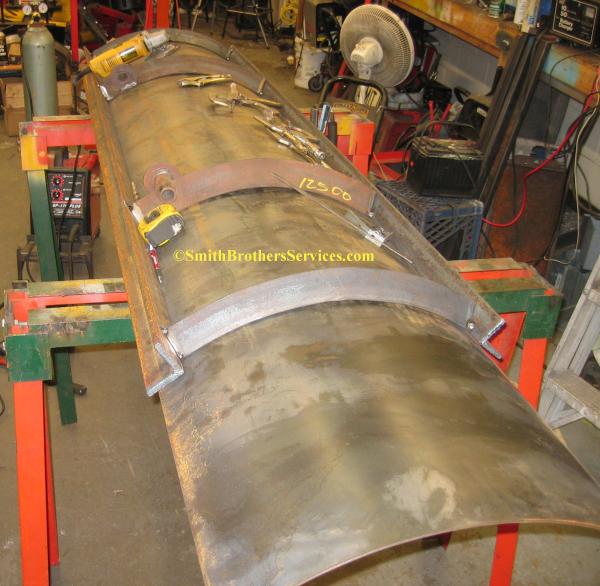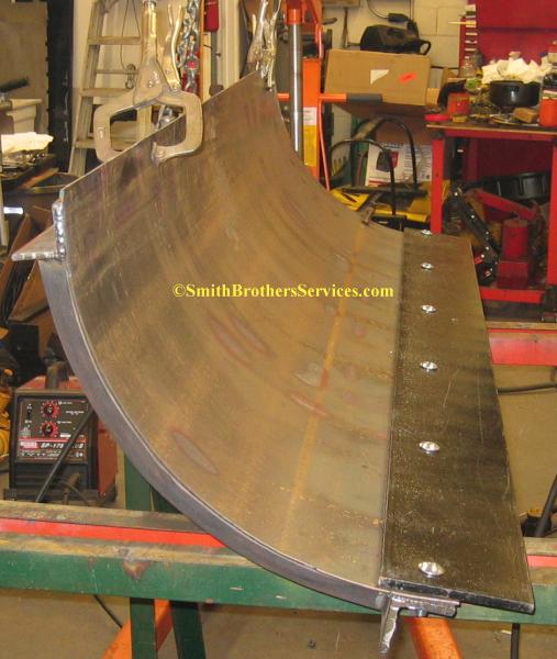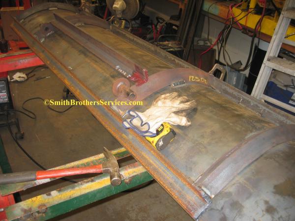 Making sure the sector pivots freely in the pivot tubes. The crossbrace between the inner ribs is not welded on yet.