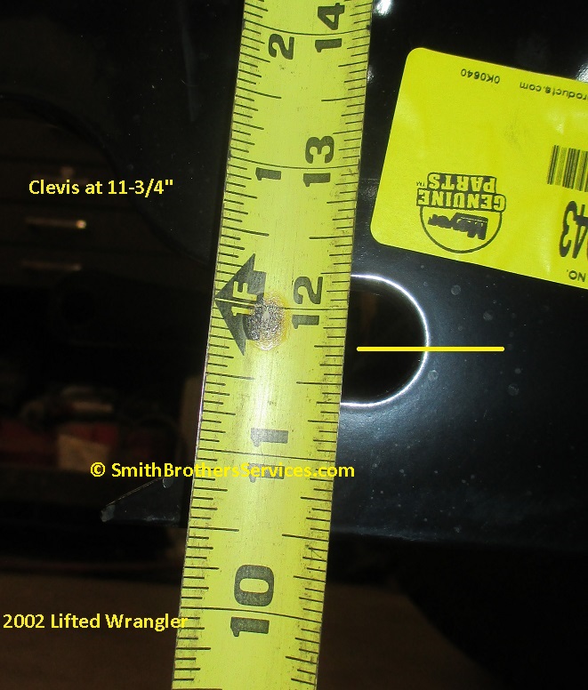 The Clevis ended up at about 11-3/4". Just a tad too much, so we had to make new ears 2" taller (hindsight is 20/20).