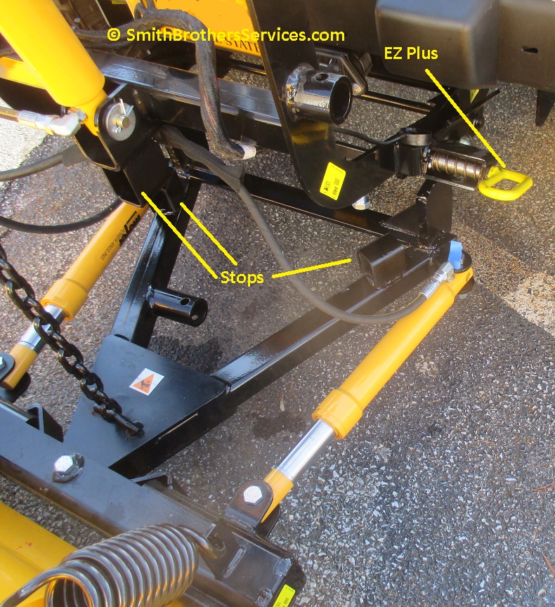 You an see a few of the additional mods here. The blue masking tape is to remind me to tighten the back bolts. I added stacking stop extensions, and the third extension is so the Lift Frame can sit on top ofthe Crankstand like it does stock. With the EZ Plus conversion, if it is a little low it will not be a problem. With the standard Drive Pro Single Pull, it WILL be a problem as the Clevis will hit the cross bar when trying to mount the plow.