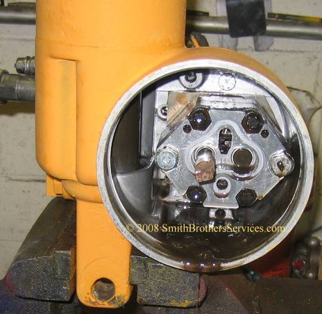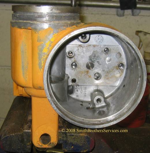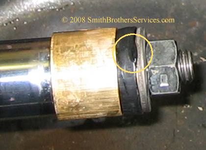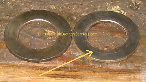 See the arrow is pointing to the steel washer. Where that heavy rust is, that is where the O Ring is supposed to make a seal. It is important that the washer be shiny and bright, and smooth. The rust indicates that water was getting inside the pump. The heavier the rust, the more water that was getting in, or the longer it was getting in.