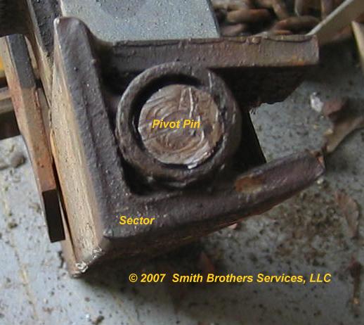 This is a very common problem with Meyer plows in general. It is mainly due to neglect. It is very important that when the plow trips, it can easily pivot on the Pivot Pins. The Pivot Pins are basically hinge pins. One end of them is in a tube welded to the sector, and the other half goes into a tube that is welded to the moldboard. These pins should be greased at least every other year. I know people that coat them liberally with Never-Seize, and it tends to last for a few years. The only way to grease them on Meyer ST plows, and C series plows is to remove the Sector from the Moldboard. You can do one side at a time, but first you must release the tension on the 3 (or 2) trip springs. You can try heating them up with a torch, but we have yet to get any out using heat. Penetrant doesn't seem to help at all either. If they are seized, then they must be cut. A Sawzall works best for this task. We will begin where we have already cut them with the Sawzall.