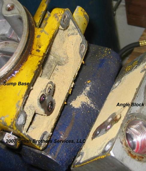 Never saw this before. Some type of sand in between the angle block and the Sump Base?